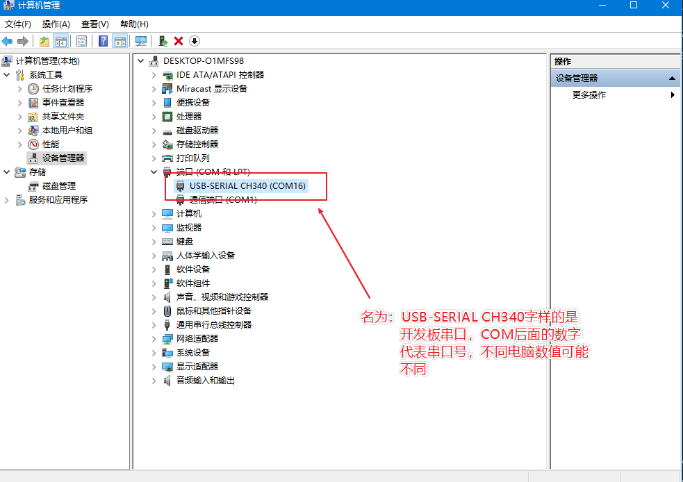 查看开发板与电脑连接后映射出来的端口